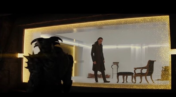 However, inside the cabin is rather sparse. It resembles the prison in the dungeons of Asgard in which he was kept, although slightly more humane in that it includes an adjoining bathroom. It also has three full walls, with the only wall-sized window being the one facing out. (Someone should probably help him hang some curtains.)